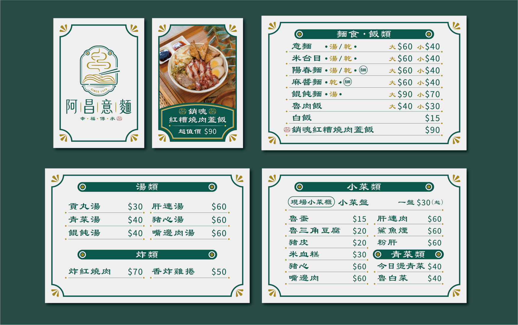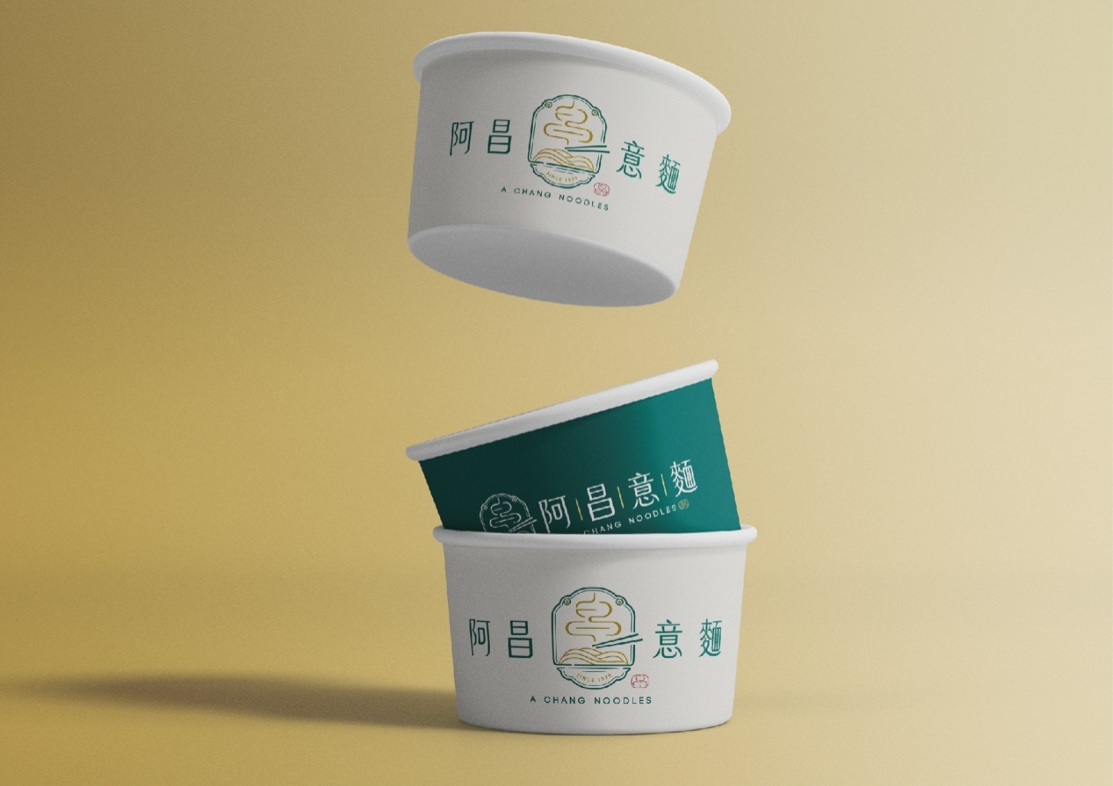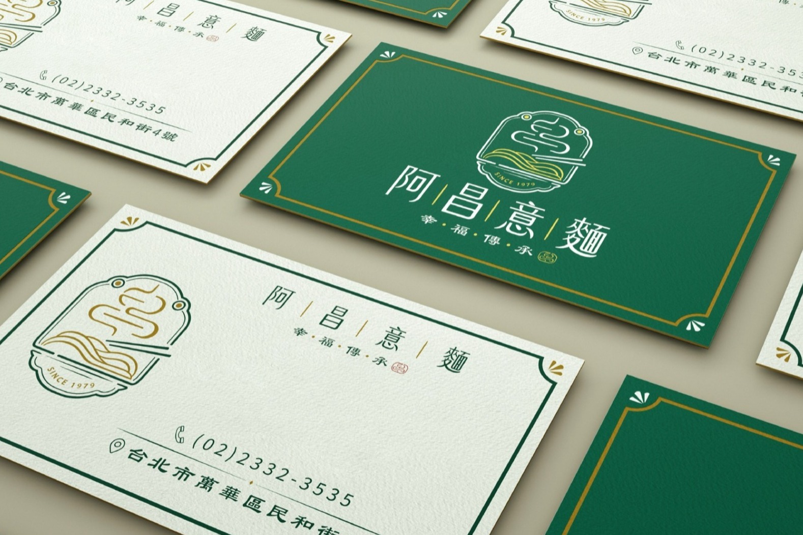 在LOGO設計中,「昌」字的輪廓巧妙融入於熱煙的意象之中,並結合篆刻印章風格的紅色落款,增添品牌的視覺獨特性與文化意涵。整體設計圍繞「傳承」、「美味」與「家鄉」三大主題,全面展現阿昌意麵專業而溫暖的品牌形象,傳遞其歷久彌新的品牌價值。