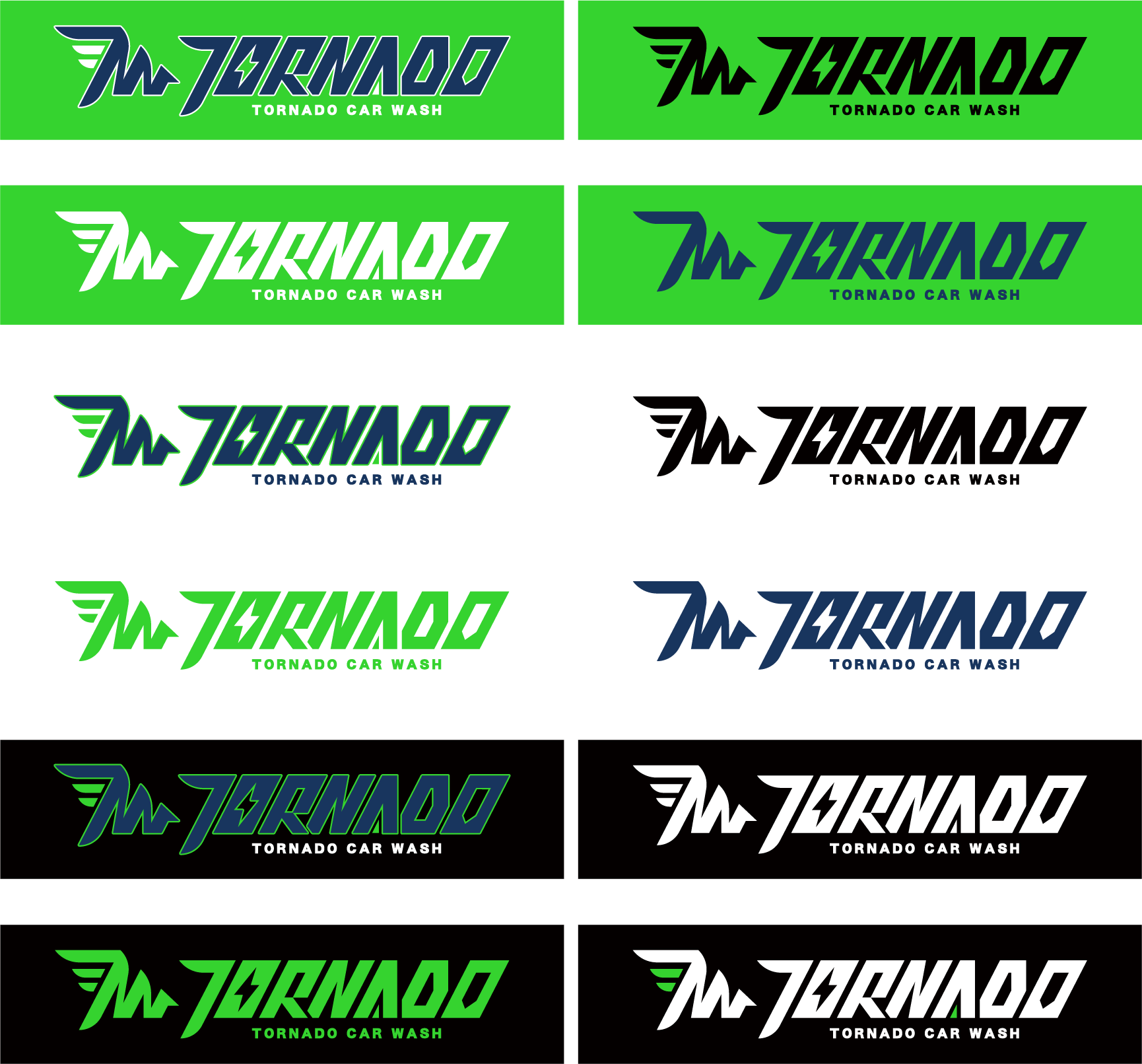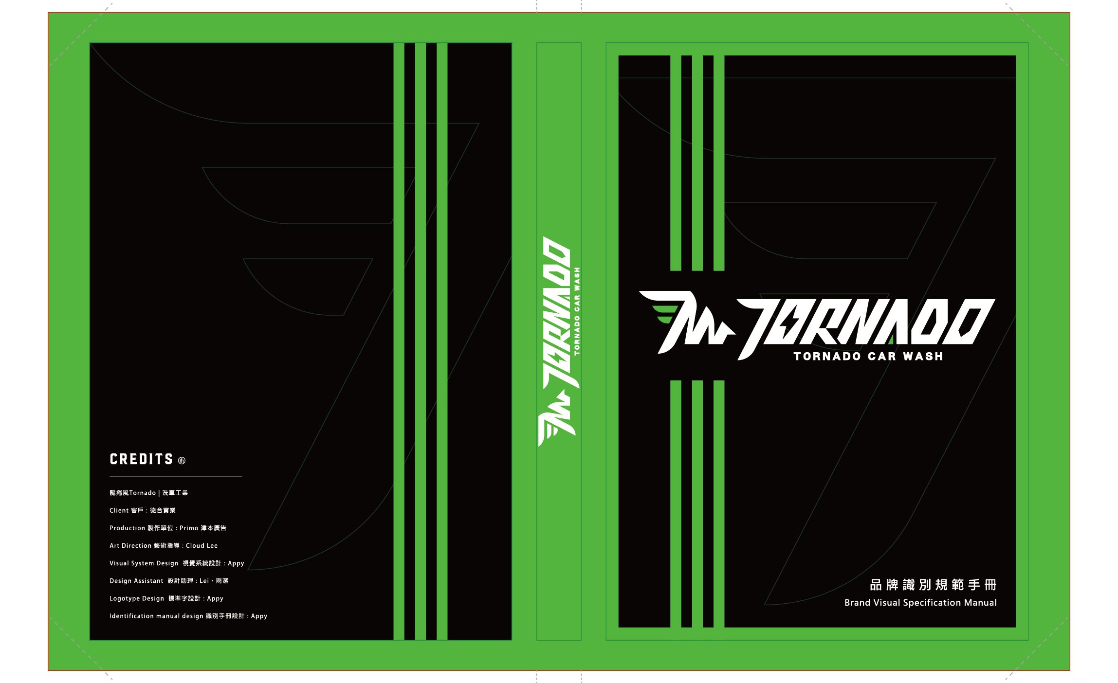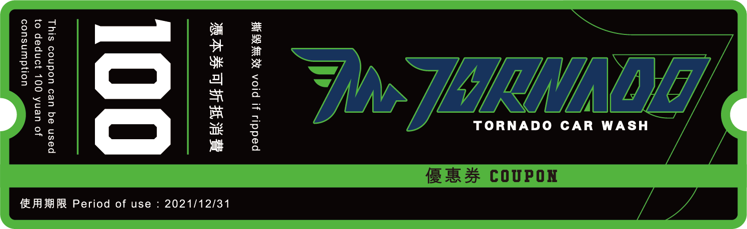 Tornado,原意為龍捲風,此標誌的設計大量使用 #速度感、#力量感作為設計元素,還原龍捲風的視覺印象, 主要形象標誌上,我們將Tornado Wash的字首,將T與W融合進龍捲風的圖像裡,並加入翅膀的意象, 強化速度感與潔淨。 標準字的部分,則採用無襯線的黑體來表達洗車機工業的俐落及專業,加入斜度讓其產生速度感, 並與主要形象標誌相互呼應,加強印象。
