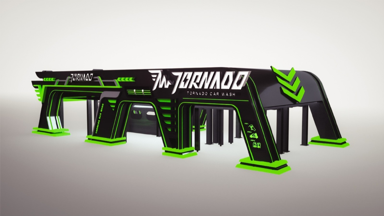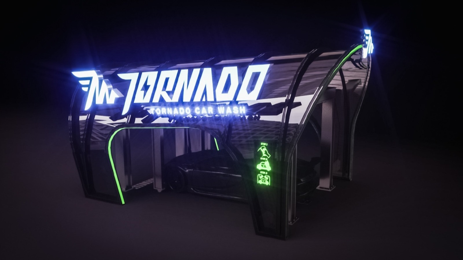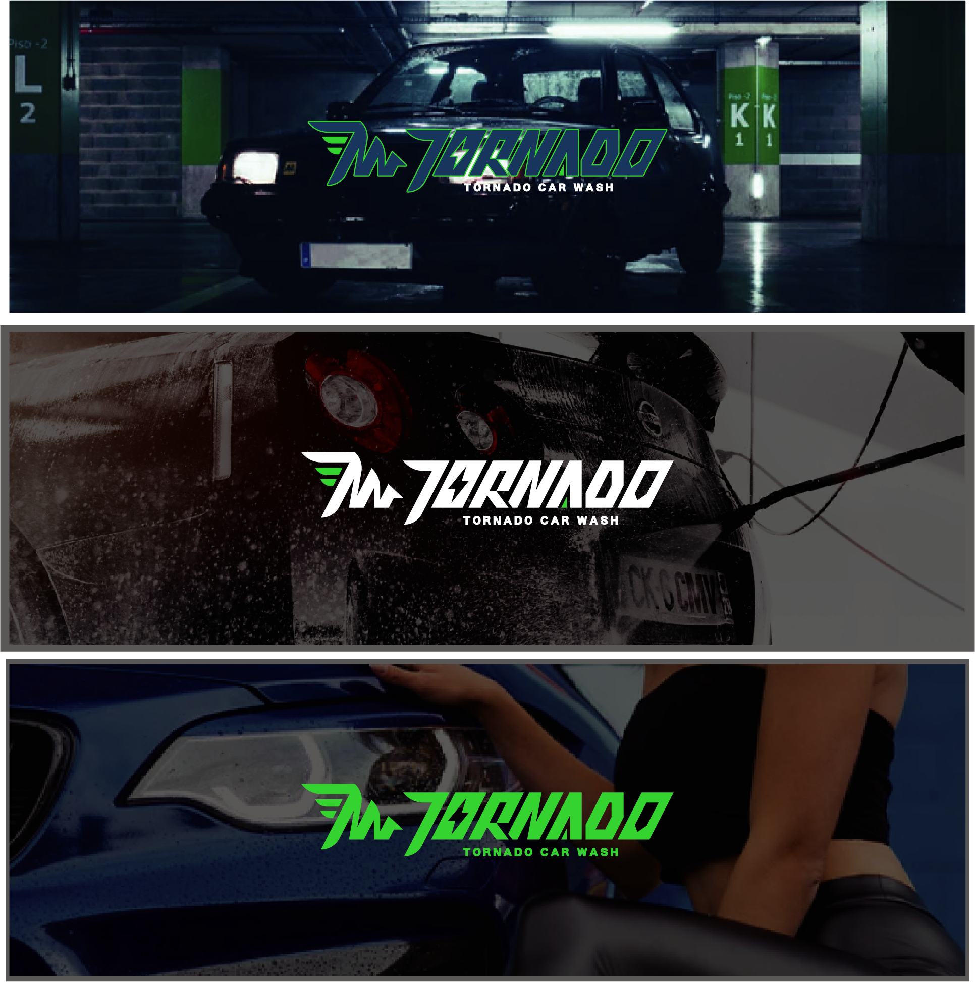 Tornado,原意為龍捲風,此標誌的設計大量使用 #速度感、#力量感作為設計元素,還原龍捲風的視覺印象, 主要形象標誌上,我們將Tornado Wash的字首,將T與W融合進龍捲風的圖像裡,並加入翅膀的意象, 強化速度感與潔淨。 標準字的部分,則採用無襯線的黑體來表達洗車機工業的俐落及專業,加入斜度讓其產生速度感, 並與主要形象標誌相互呼應,加強印象。